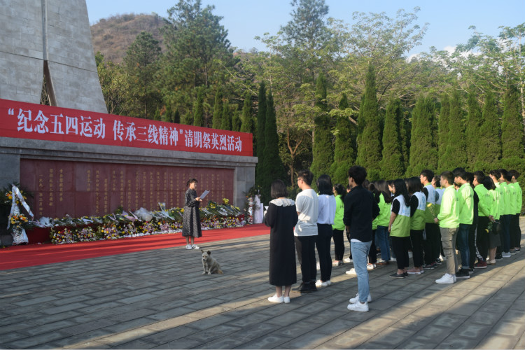 主持人罗欣向大家讲解三线精神,对攀枝花市英雄纪念碑进行详细介绍,之后全体人员默哀。党支部代表何凯、团代表陈文静依次发言,团委学生会代表雷超鹏带领全体人员进行宣誓,向革命英雄烈士表达崇高的敬意与沉痛的哀思。