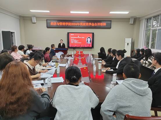 2024年10月9日上午,经济与管理学院于明德楼二楼会议室举行2024年国家奖学金公开答辩。经济与管理学院学生科科长孙亚明、分团委书记李抒泽、2021级辅导员孙艳敏、2022级辅导员钟新周、2023级辅导员倪萍、2024级辅导员赵萍参加此次公开答辩评审。2021级、2022级、2023级学生代表参与其中。